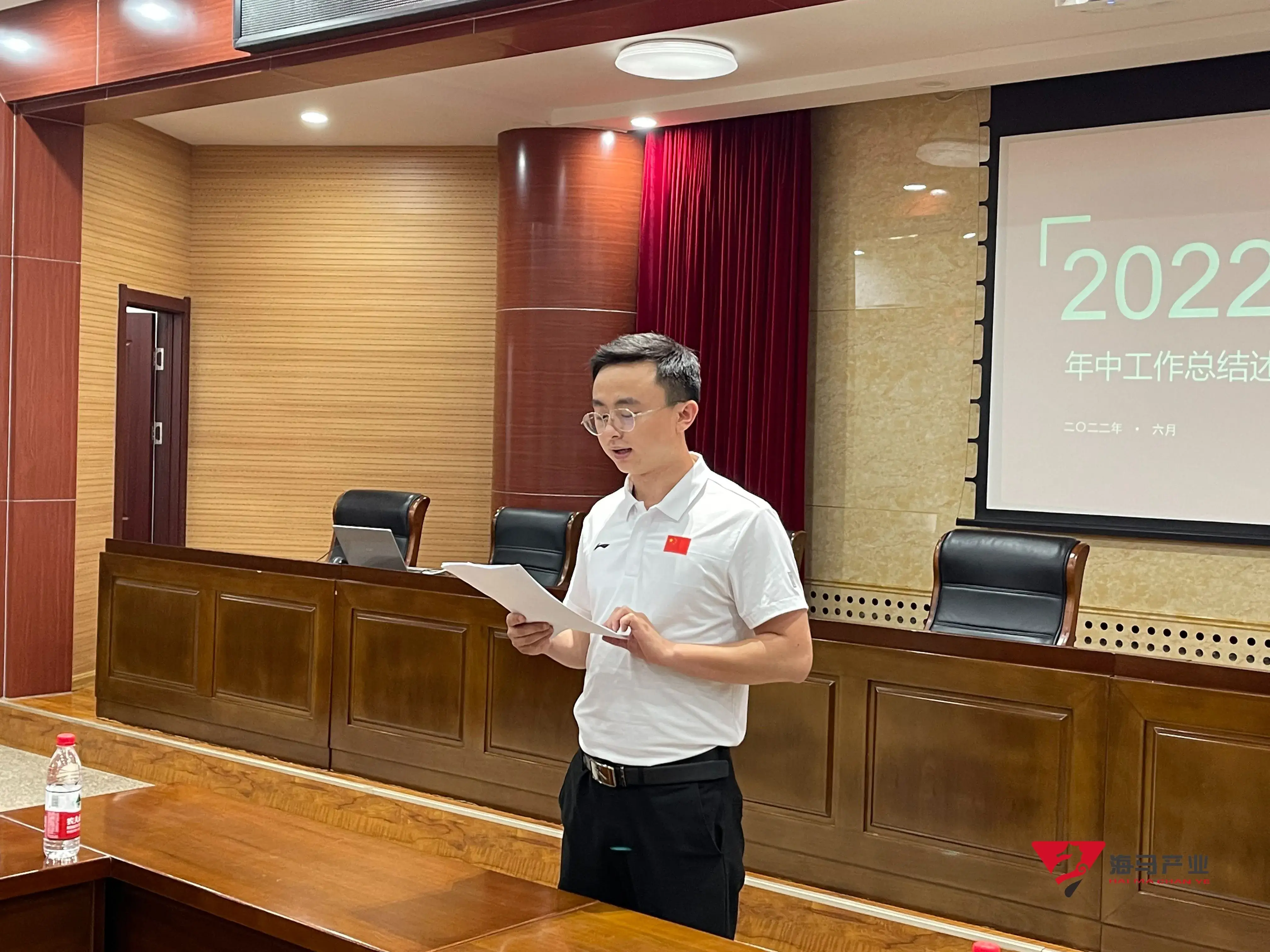 2022年6月29日下午,人人体育文化产业集团在山东省体育中心二楼会议室召开年中工作总结述职会议,会议对上半年工作成果进行了总结汇报,并就下半年重点工作进行部署。总经理王海民出席了本次会议。会议由综合管理部负责人王永健主持。
